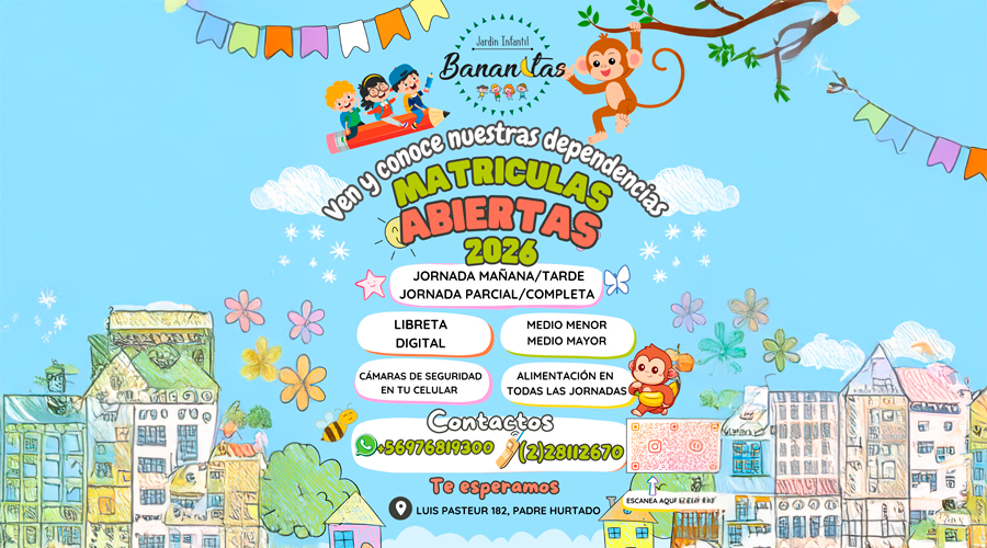 Bananitas, es un Jardín Infantil que tiene como objetivo brindar a todos los niños y niñas de 2 a 4 años un lugar acogedor donde aprender y desarrollar todas sus capacidades de manera integral y significativa, en amplias salas de actividades acorde a la edad de tu hijo/a y acondicionadas para su comodidad y bienestar.